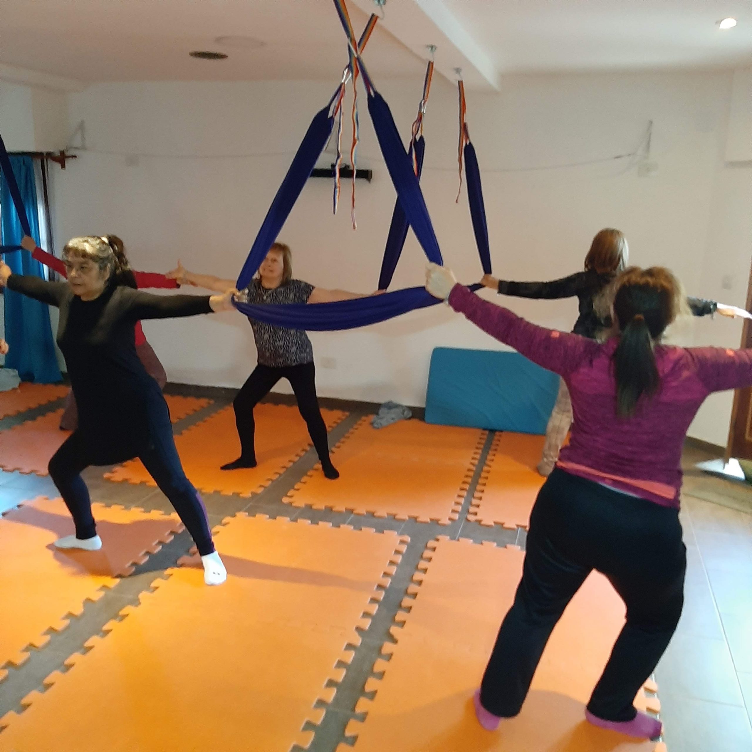 En estas clases utilizamos la hamaca como elemento principal de trabajo, brindando un trabajo completo de propiocepción, equilibrio, sostén, atención plena y conciente en el presente, sin perder la base de la práctica yoguíca. Nuestras clases no tiene límite de edad, ya que cada alumno encuentra su espacio corporal adecuando la propuesta a sus necesidades. Grupos reducidos.